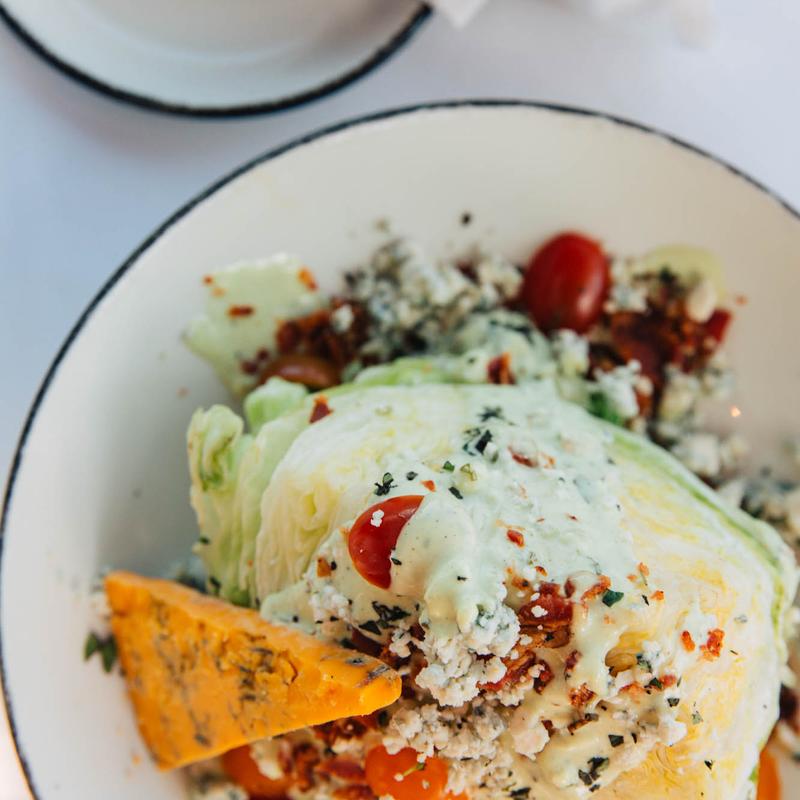 All salads are gluten free without croutons | Additions: Shrimp $9.00 | Oysters $12.00 | Chicken $8.00 | Crab Cake $12.00 | Ancho Chili Rubbed Salmon* $12.00 | Tuna* $14.00 | Lobster Tail MP • House-made Dressings (GF): Creamy Balsamic Vinaigrette, Buttermilk Ranch, Caesar*, Chunky Bleu Cheese, Whole Grain Mustard Vinaigrette